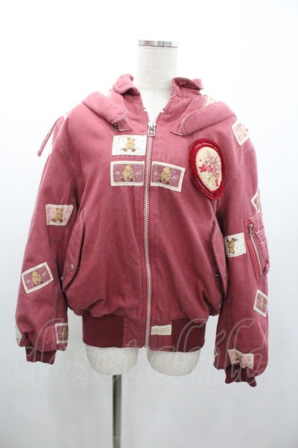 PINK HOUSE / すみれブーケくま刺繍ゼッケンフードブルゾン ピンク I-26-01-04-028-LO-JA-SA-ZI