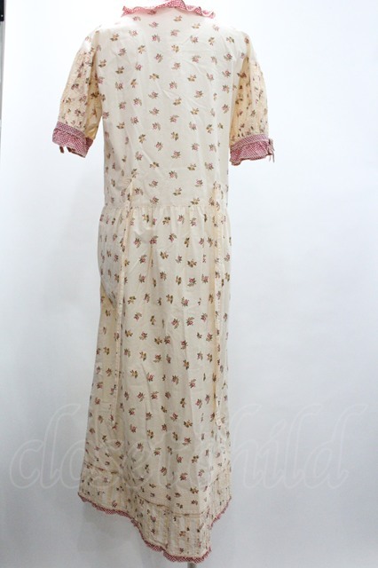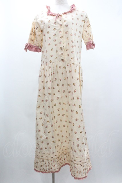WONDERFUL WORLD / 薔薇柄ウエスト切替半袖ワンピース アイボリーX赤チェック I-26-01-04-036-LO-OP-SA-ZI [2100060000048634-I-26-01-04-036-LO-OP-SA-ZI]