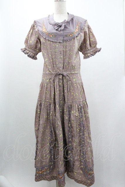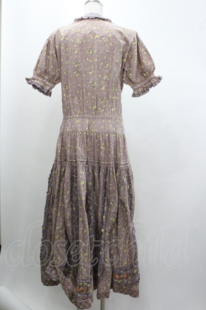 WONDERFUL WORLD / ミニローズ総柄ラウンド切替半袖ワンピース パープル I-26-01-04-045-LO-OP-SA-ZI [2100060000048596-I-26-01-04-045-LO-OP-SA-ZI]