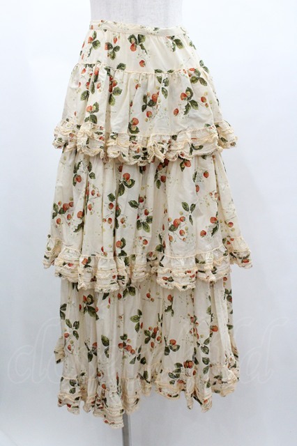 WONDERFUL WORLD / いちご柄3段フリルスカート 生成り I-26-01-04-060-LO-SK-SA-ZI [2100060000048623-I-26-01-04-060-LO-SK-SA-ZI]