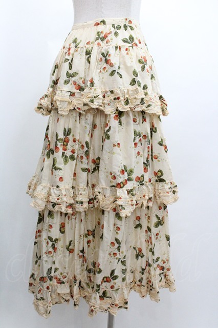 WONDERFUL WORLD / いちご柄3段フリルスカート 生成り I-26-01-04-060-LO-SK-SA-ZI