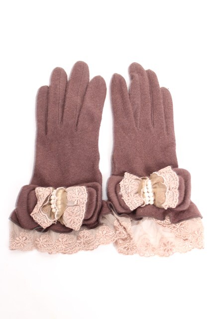 axes femme / ビッグリボン手袋 茶 Y-26-01-07-011-AX-ZA-SZ-ZY