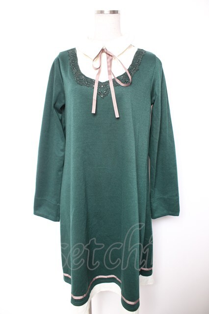 axes femme / 襟デザインAラインカットワンピース M グリーン Y-26-01-07-112-AX-OP-SZ-ZY