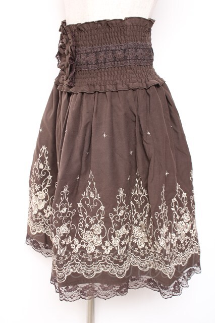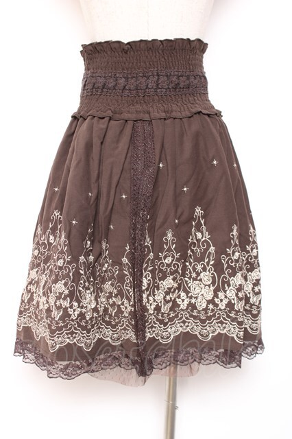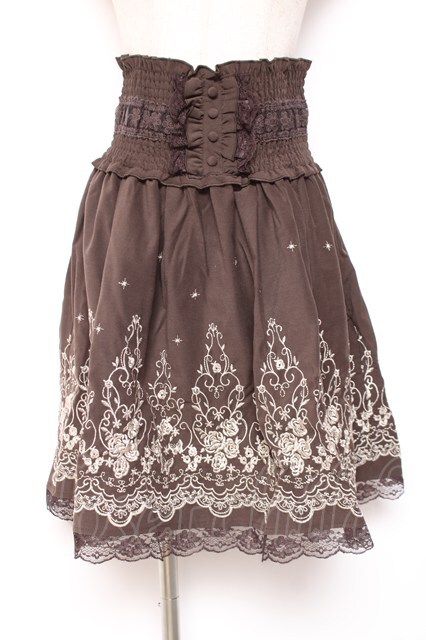 axes femme / ハイウエスト刺繍スカート M 茶 Y-26-01-07-168-AX-SK-SZ-ZY