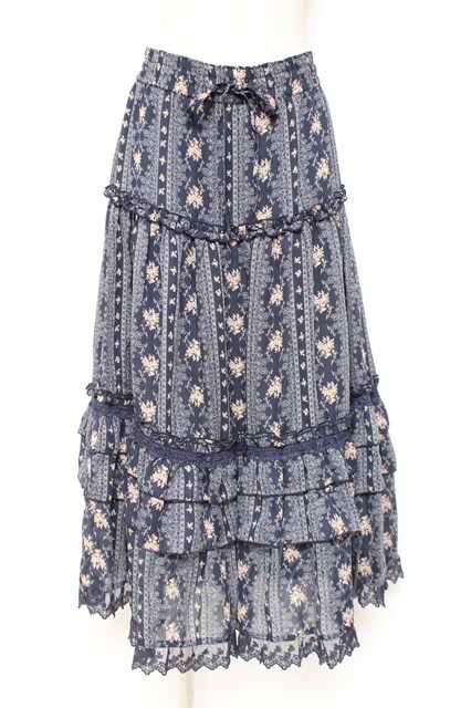 axes femme / 花柄ロングスカート M 紺 Y-26-01-07-173-AX-SK-SZ-ZY