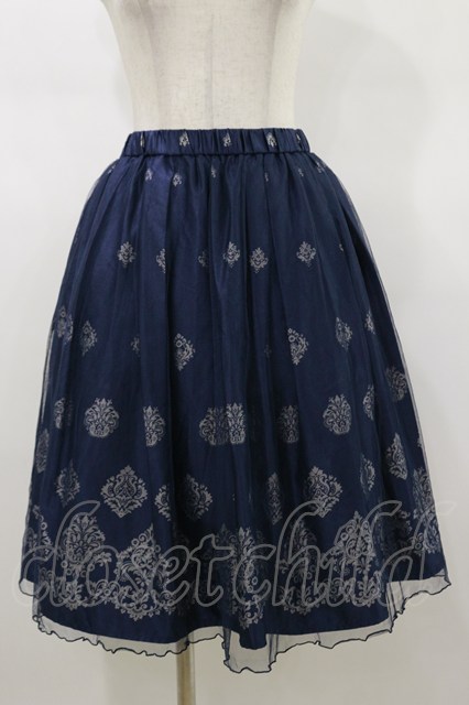 axes femme / オーナメント柄チュールスカート M ネイビー H-26-01-12-070-AX-SK-NS-ZH