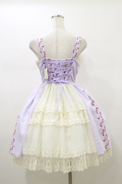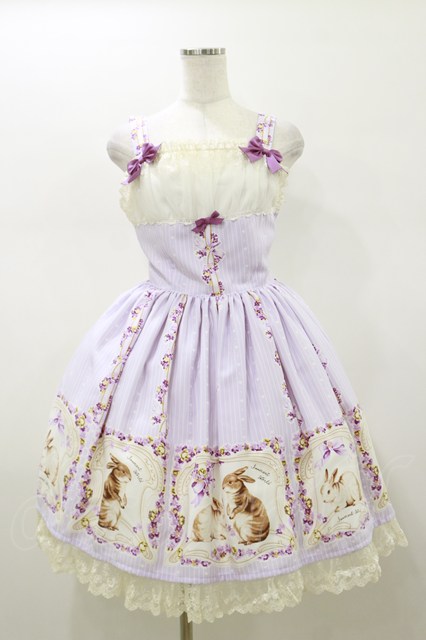 Innocent World / 白と茶うさぎのバッスルジャンパースカート L ラベンダー H-26-01-12-086-IW-OP-NS-ZH