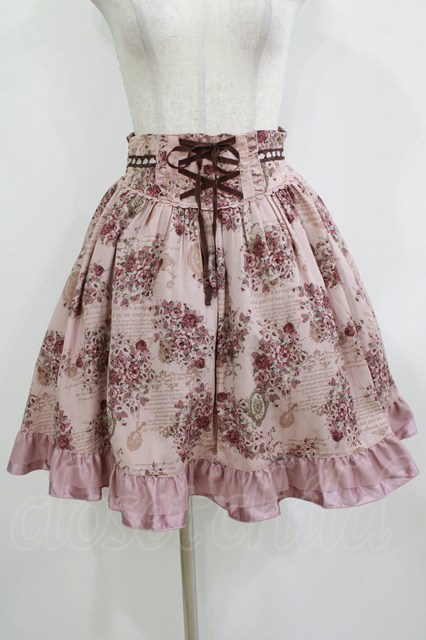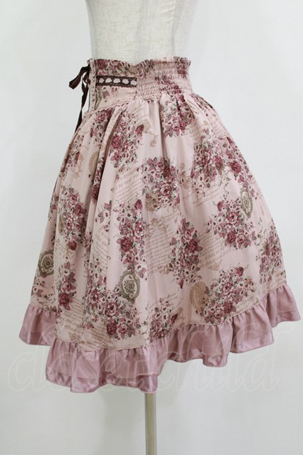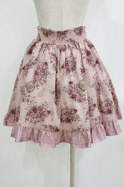 axes femme / メッセージ×花柄スカート M ピンク H-26-01-10-1018-AX-SK-NS-ZH