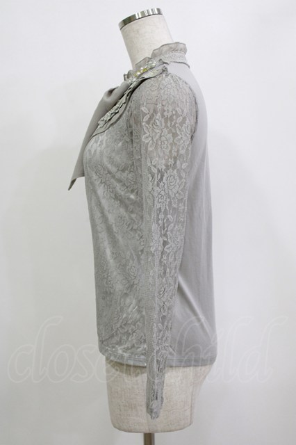 axes femme / 総レースボウタイプルオーバー M グレー H-26-01-10-1060-AX-TO-NS-ZH