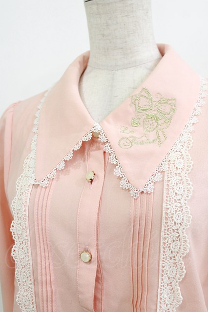 axes femme POETIQUE / いちご刺繍ブラウス M ピンク H-26-01-10-1045-AX-BL-NS-ZH
