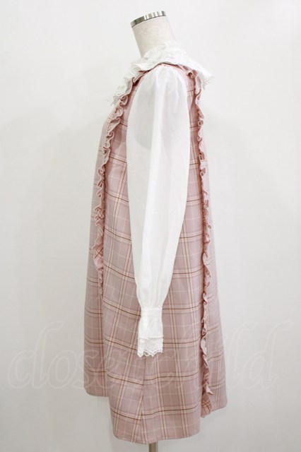 axes femme kawaii / チェックドッキングワンピース M ピンク H-26-01-10-1030-AX-OP-NS-ZH