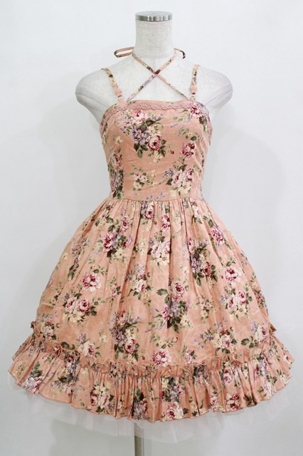 Victorian maiden / チュール付ジャガード編み上げワンピース Free ピンク H-26-01-10-1006-CL-OP-NS-ZH