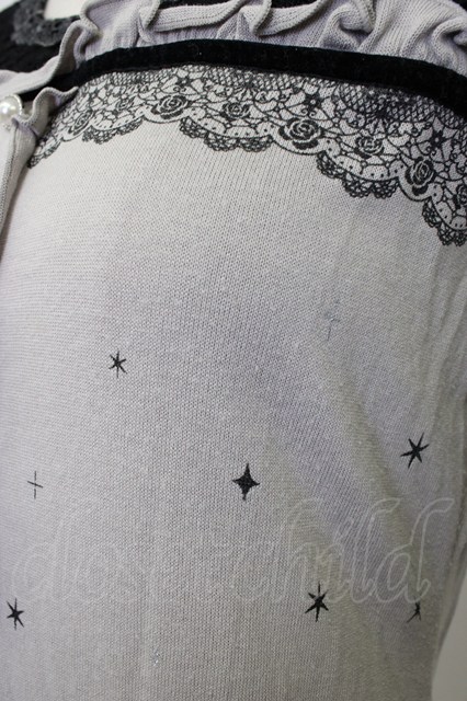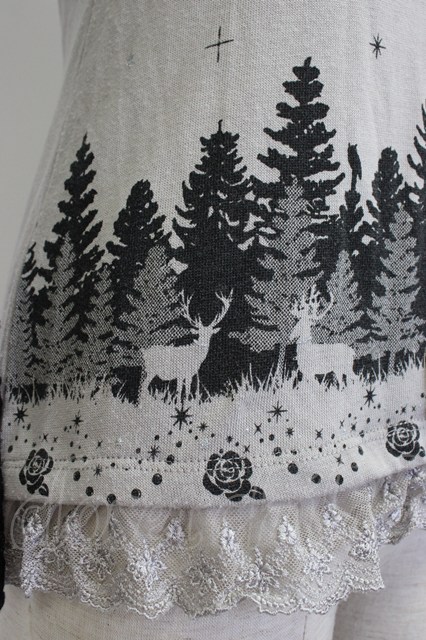 axes femme / レース切り替え森柄トップス グレーX黒 T-26-01-10-001-AX-TO-SA-ZT