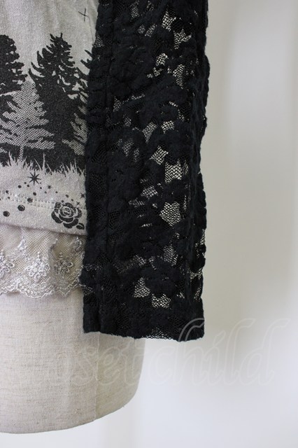axes femme / レース切り替え森柄トップス グレーX黒 T-26-01-10-001-AX-TO-SA-ZT [2100060000041658-T-26-01-10-001-AX-TO-SA-ZT]