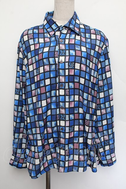AXES-X / ローズステンドグラス柄シャツ M 青 S-26-01-04-014-LO-TO-TK-ZS [2100020000036041-S-26-01-04-014-LO-TO-TK-ZS]