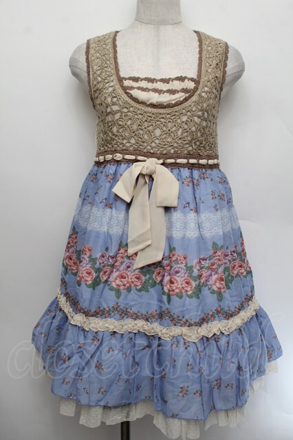 axes femme / カギ針ニット使いパネル柄ワンピース ブルー S-26-01-04-031-AX-OP-HR-ZS [2100020000035462-S-26-01-04-031-AX-OP-HR-ZS]