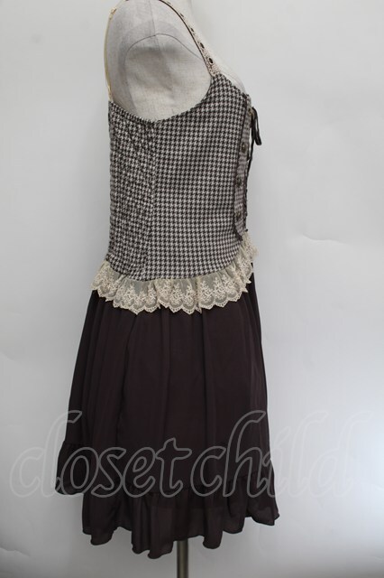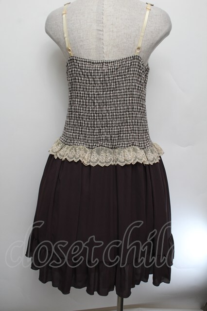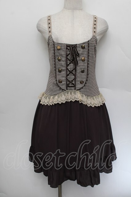 axes femme / 千鳥柄ビスチェ切替チュニ ブラウン S-26-01-04-033-AX-OP-HR-ZS
