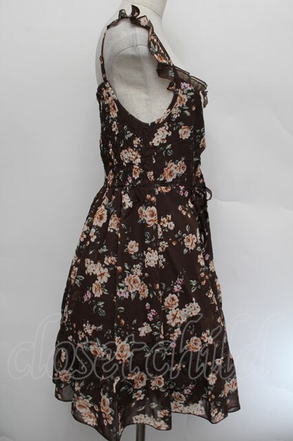 axes femme / ブーケ花柄タック編み上げワンピース ブラウン S-26-01-04-034-AX-OP-HR-ZS [2100020000035464-S-26-01-04-034-AX-OP-HR-ZS]