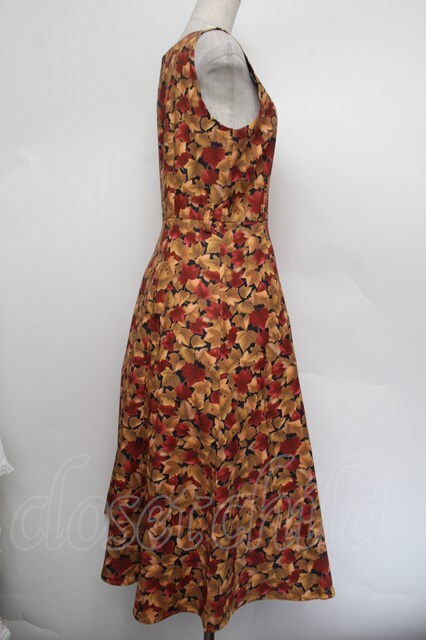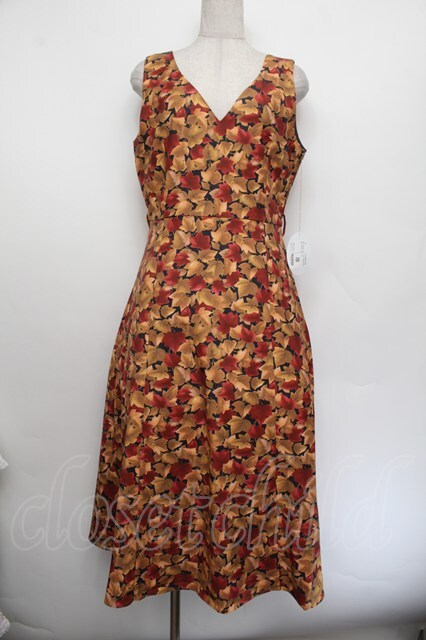 an another angelus / フォールリーフ柄Vネックワンピース F ブラウン×イエロー S-26-01-04-038-CA-OP-TK-ZS [2100020000036073-S-26-01-04-038-CA-OP-TK-ZS]