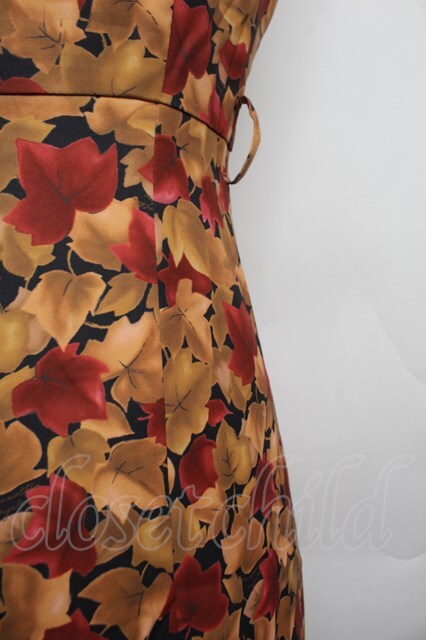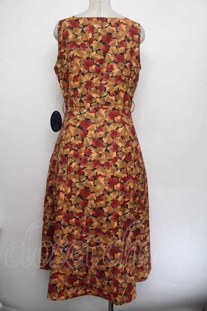 an another angelus / フォールリーフ柄Vネックワンピース F ブラウン×イエロー S-26-01-04-038-CA-OP-TK-ZS