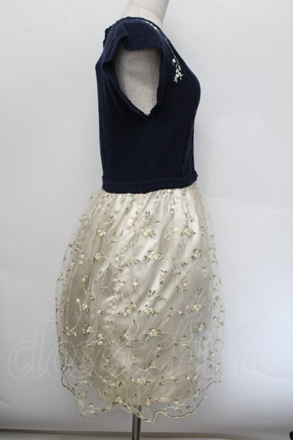 axes femme / レース×花柄ドッキングワンピース 紺xオフ S-26-01-04-044-AX-OP-AS-ZS