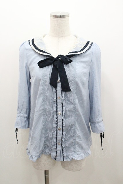 axes femme / セーラーカラーブラウス M サックス I-26-01-06-015-AX-TO-TE-ZI