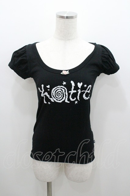 Katie / ロゴプリント半袖カットソー S 黒X白 I-26-01-06-024-LO-TO-SA-ZI