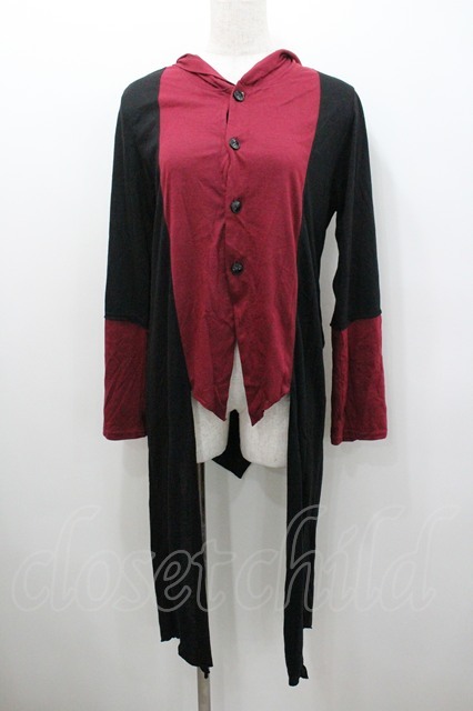 ALGONQUINS / 2カラーフードロングカーディガン 黒X赤 I-26-01-06-027-AL-TO-SA-ZI