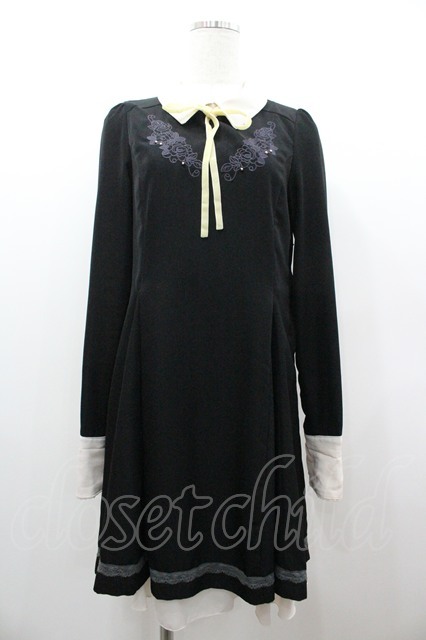 axes femme / 胸元刺繍バイカラーワンピース 黒Xアイボリー I-26-01-06-068-AX-OP-SA-ZI [2100060000048822-I-26-01-06-068-AX-OP-SA-ZI]