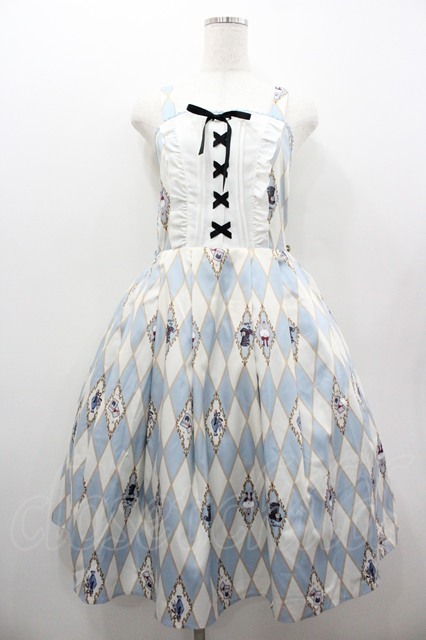 axes femme kawaii / ダイヤ柄ジャンスカ サックスXアイボリー I-26-01-06-070-AX-OP-SA-ZI