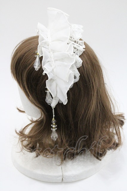 MR corset / シフォンフリルビジューカチューシャ 白 I-26-01-06-116-PU-AC-SA-ZI