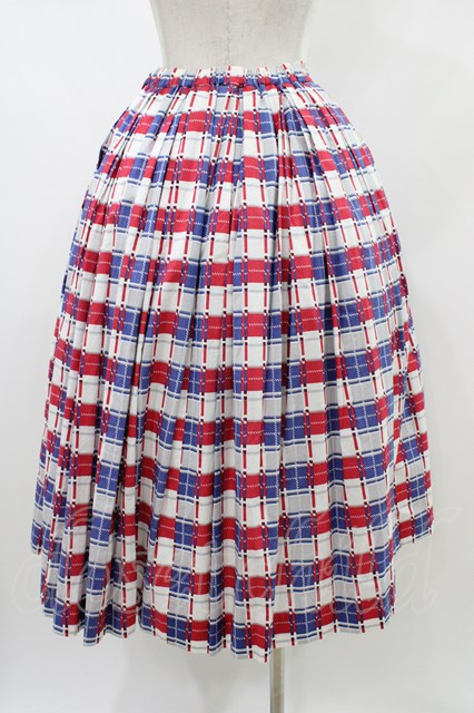 Jane Marple / Graffiti checkのトリプルタックスカート オフホワイト×ネイビー×レッド H-26-01-12-1041-JM-SK-KB-ZH [2100030000082989-H-26-01-12-1041-JM-SK-KB-ZH]