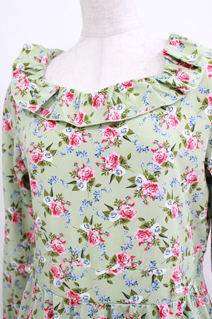 FLC / 星名桜子/2WAY花柄フリルワンピース M グリーン H-26-01-13-021-LO-OP-NS-ZH
