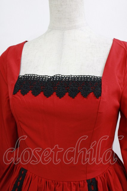 SOUFFLESONG(海外ロリータブランド) / 付け襟付きワンピース S レッド H-26-01-13-002-EL-OP-NS-ZH