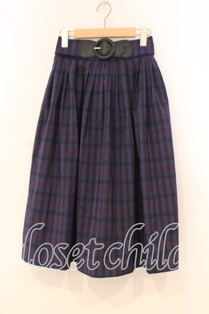 an another angelus / ベルト付きチェックタックスカート F ネイビー O-26-01-08-055-CA-SK-YM-OS