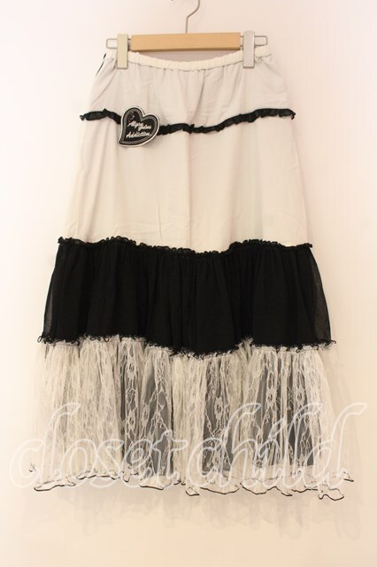 ALGONQUINS / 異素材ティアードスカート ブラック×ホワイト O-26-01-08-034-AL-SK-IG-OS