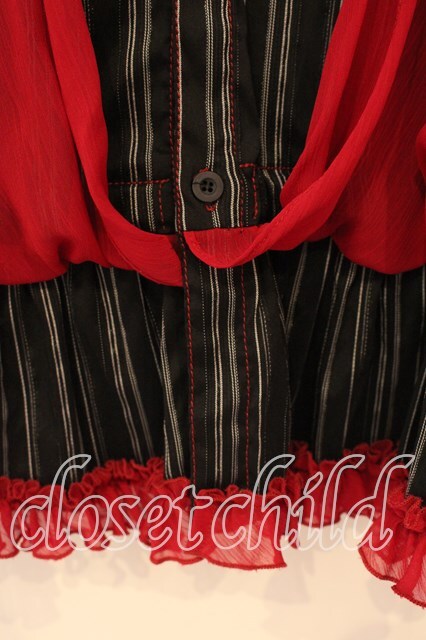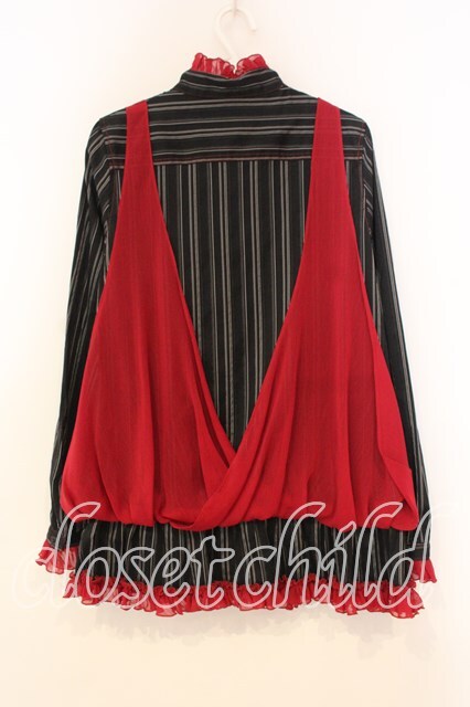 ALGONQUINS / レイヤード風ラメストライプブラウス F ブラック×レッド O-26-01-08-048-AL-BL-OW-OS [2100080000070519-O-26-01-08-048-AL-BL-OW-OS]