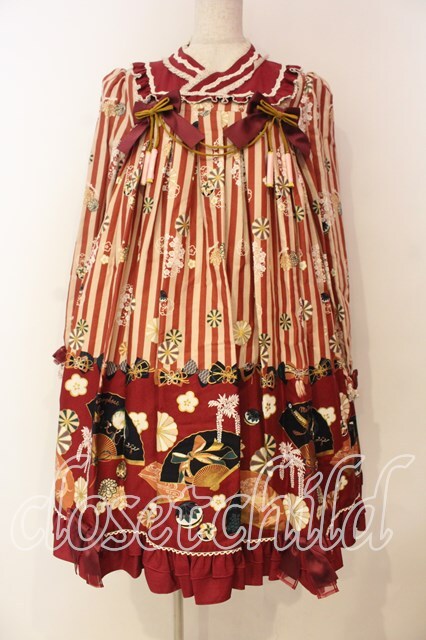 metamorphose / うたかたの華かぐらAラインワンピース えんじ系 O-26-01-08-020-ME-OP-IG-OS