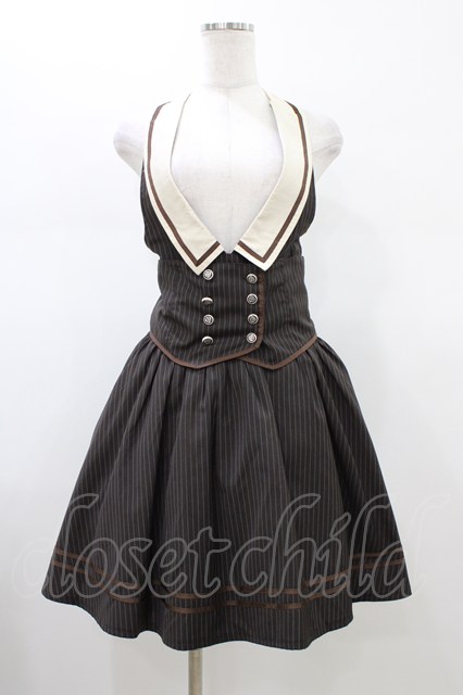 Blue rouge / ストライプ襟付きジャンパースカート Free ブラウン H-26-01-14-1030-CA-OP-NS-ZH