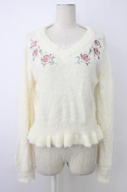 axes femme / ローズ刺繍フェザーニット ホワイト T-26-01-09-005-AX-TO-SA-ZT