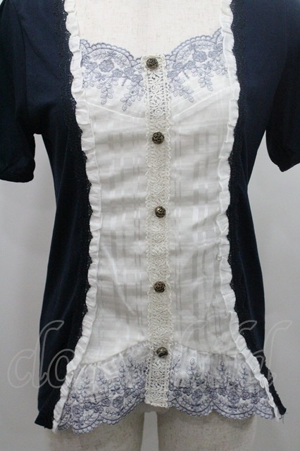 axes femme / 胸元レース重ね着風トップス M ネイビー I-26-01-08-027-AX-TO-TE-ZI [2100060000048003-I-26-01-08-027-AX-TO-TE-ZI]