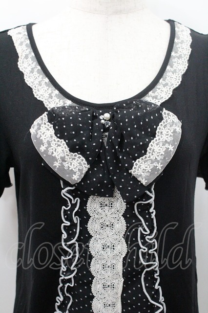 axes femme / ドットシフォン切替Tシャツ M 黒 I-26-01-08-030-AX-TS-TE-ZI [2100060000048000-I-26-01-08-030-AX-TS-TE-ZI]