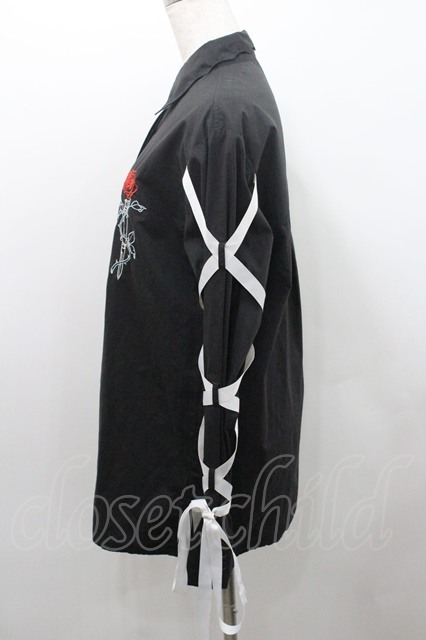 LISTEN FLAVOR / 薔薇とナイフ袖リボンシャツ 黒X白X赤 I-26-01-08-045-PU-BL-SA-ZI [2100060000048794-I-26-01-08-045-PU-BL-SA-ZI]