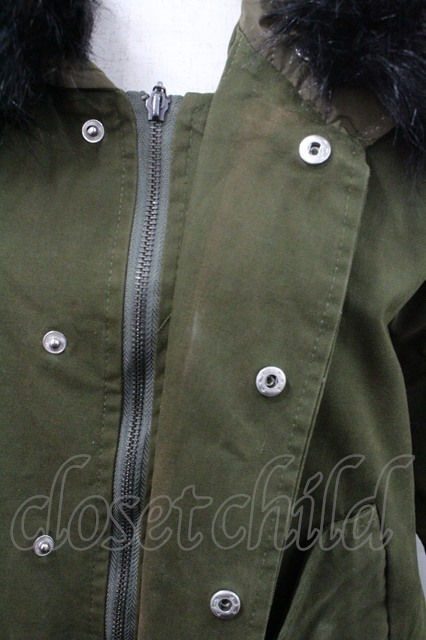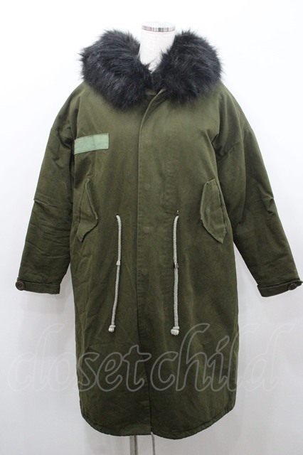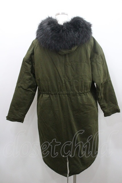 ALGONQUINS / ファーフードロングコート カーキX黒 I-26-01-08-051-AL-CO-SA-ZI