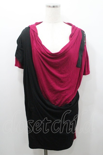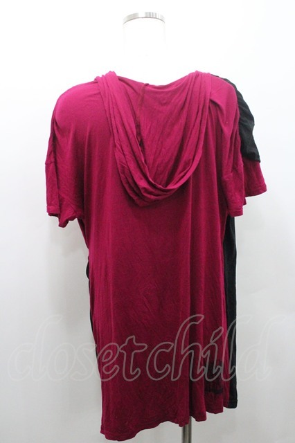 ALGONQUINS / 2カラーフード半袖カットソー 濃ピンクX黒 I-26-01-08-052-AL-TO-SA-ZI [2100060000048792-I-26-01-08-052-AL-TO-SA-ZI]