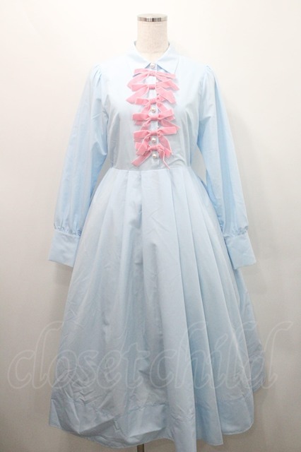 Areeam / リボンタックシャツワンピース サックスxピンク I-26-01-08-056-LO-OP-SA-ZI [2100060000048869-I-26-01-08-056-LO-OP-SA-ZI]