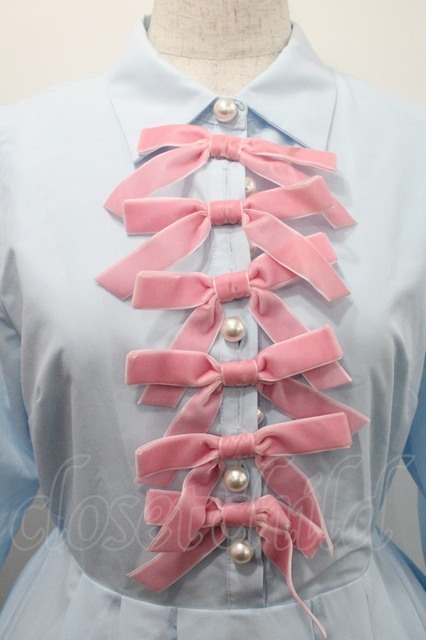 Areeam / リボンタックシャツワンピース サックスxピンク I-26-01-08-056-LO-OP-SA-ZI