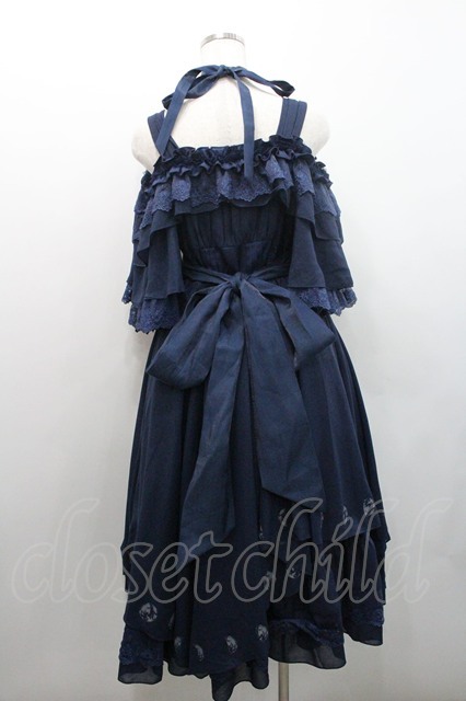 Hoshibako Works / 月の満ち欠けオフショルダードレッシーワンピース&刺繍ベルト&チョーカーセット ネイビー I-26-01-08-071-LO-OP-SA-ZI [2100060000048883-I-26-01-08-071-LO-OP-SA-ZI]