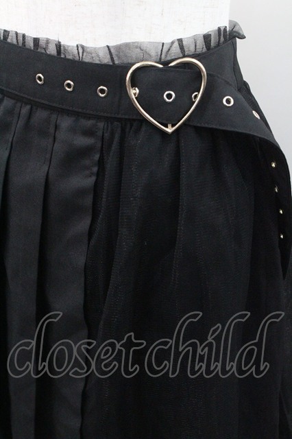 Rojita / ハートバックルプリーツスカート 黒 I-26-01-08-097-LO-SK-SA-ZI