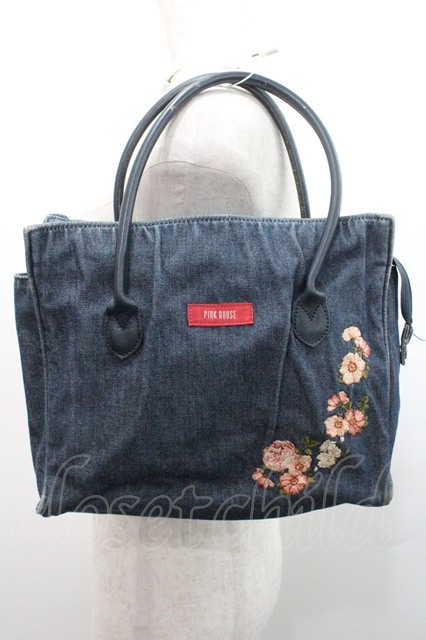 PINK HOUSE / フラワー刺繍デニムバッグ ネイビー I-26-01-08-108-LO-BG-SA-ZI